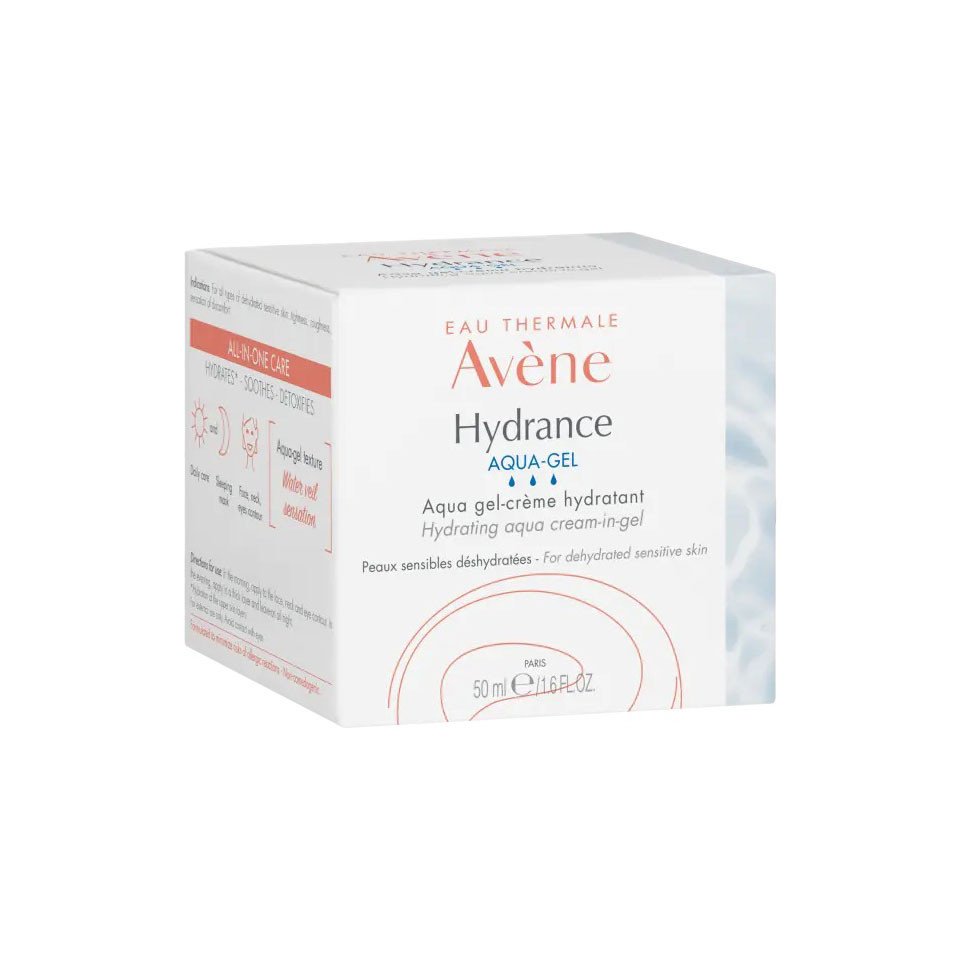 All-in-one hydrating, protective, mattifying and brightening skincare, Hydrance Aqua-Gel offers long-lasting hydration thanks to its combination of hydrating active ingredients. This gel-cream with a fresh aqua-gel texture gives the skin a delicate veil of water to provide comfort, suppleness and radiance. It hydrates, mattifies and brightens, all types of dehydrated, sensitive skin. This hydrating gel protects the skin from daily external aggressors thanks to the antioxidant action of Provitamin E (Pre-tocopheryl), combined with Myrtle extract, which helps illuminate and brighten the skin complexion. Also enriched with Cucurbita Pepo to reduce shine and make pores less visible.