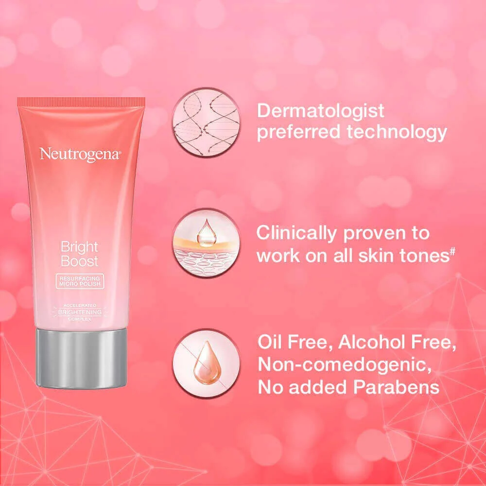 Neutrogena bright boost resurfacing polish is a specially formulated resurfacing polish that helps activate the skin's natural renewal process. Neutrogena bright boost resurfacing polish awakens the surface skin cells natural turnover to help prevent dark spots, uneven skin tone and fine lines to reveal a brighter, more radiant even looking skin. It contains aha and pha to promote gentle exfoliation, getting rid of dull and tired cells. Neutrogena bright boost resurfacing polish is suitable for all skin types. Recommended by dermatologist worldwide, Neutrogena has brought clinically-proven skin care solutions to consumers for over 60 years. By creating, innovating and rethinking what is possible in skincare, Neutrogena products for the face and body deliver real results without compromises. Its wide range of beauty and skin care lines has some of the world’s most loved products. Today Neutrogena offers more than 650 products worldwide in the face, body, acne, sun protection, makeup, men’s care, and anti-wrinkle categories.